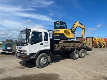 | 6x4 Isuzu Transporter. Carries up to 11 tonne load. Flat part of deck is 5.2m long, Total length including beaver tail is 6.7m Long, 2.5m Wide. Per day + 85 cents p/km exc GST/Damage Waiver | $475.00 |